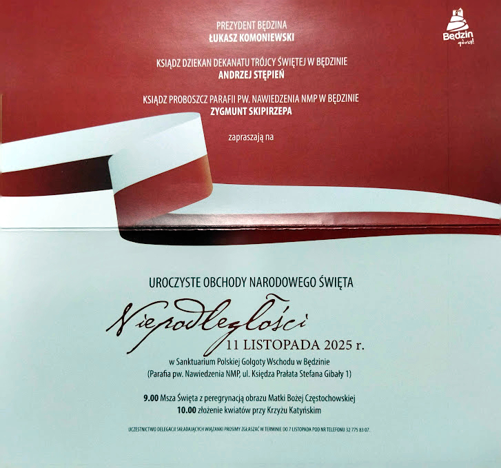 Spotykamy się o godzinie 9.00 w Sanktuarium Polskiej Golgoty Wschodu (Parafia pw. Nawiedzenia NMP, ul. Księdza Prałata Stefana Gibały 1) a o godzinie 10.00 złożymy kwiaty przy Krzyżu Katyńskim.